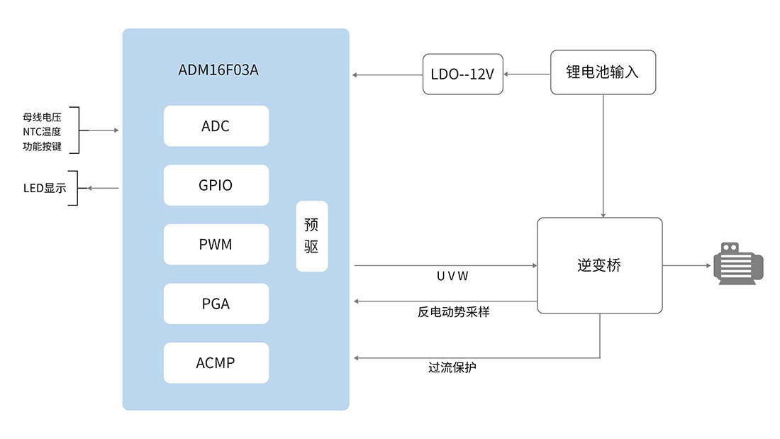 ●多種保護(hù)措施:過流保護(hù)、短路保護(hù)、過壓保護(hù)、欠壓保護(hù)、堵轉(zhuǎn)保護(hù)、電池過溫保護(hù)、MOS管過溫保護(hù)等