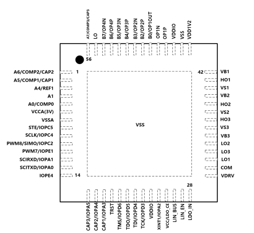 六路NMOS Pre-Driver+4TCON+3CAP+QEP+延時濾波+運(yùn)算加速單元(除法+開方+反正切+帕克變換+32位乘法移位