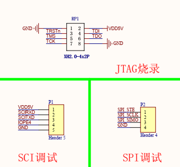 ADM16F03A2最小系統(tǒng)如下圖所示,包含JTAG接口、串口、SPI、PWM模塊、ADC模塊等。