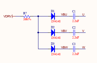 ADC采樣母線采樣電路,母線電壓的值進(jìn)行分壓送到芯片AD口,參與到FOC的運(yùn)算。