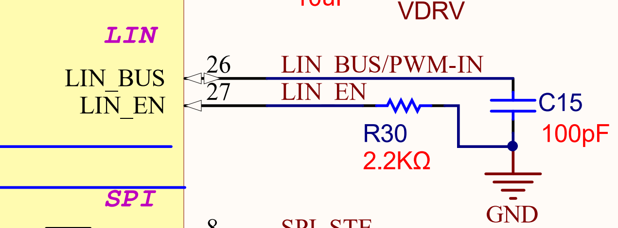 芯片內(nèi)部集成LIN芯片,內(nèi)部兼容識別PWM,可以通過輸入PWM/LIN進(jìn)行通訊調(diào)速和反饋故障。使能LIN_EN引腳,來實(shí)現(xiàn)打開關(guān)閉LIN通訊。