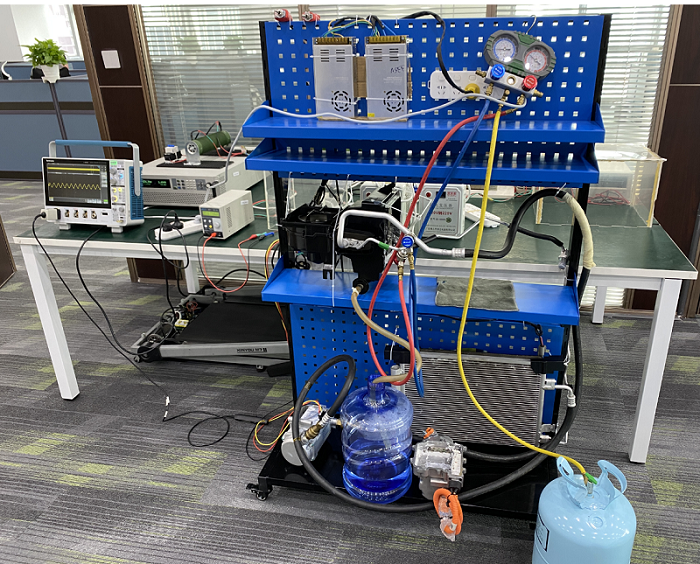進芯電子實驗室具備汽車空調(diào)壓縮機帶負(fù)載測試條件,可以實現(xiàn)自由更換壓縮機、背壓、平衡壓等測試條件,下圖是進芯電子壓縮機測試平臺。