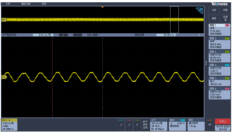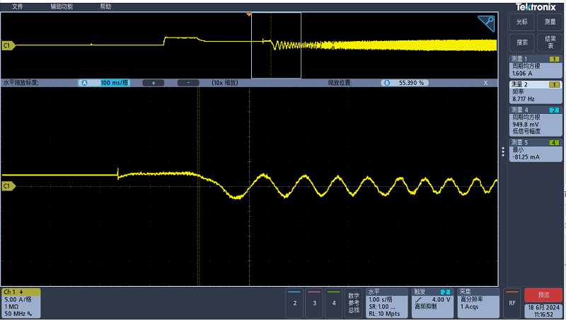基于以上設(shè)計思路,我司已推出板級方案,以下為產(chǎn)品運行時電流波形。