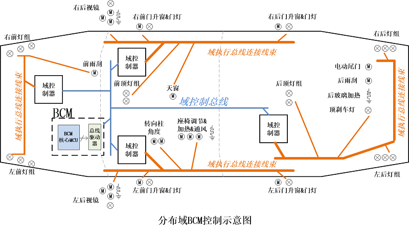 ▲分布域BCM控制示意圖