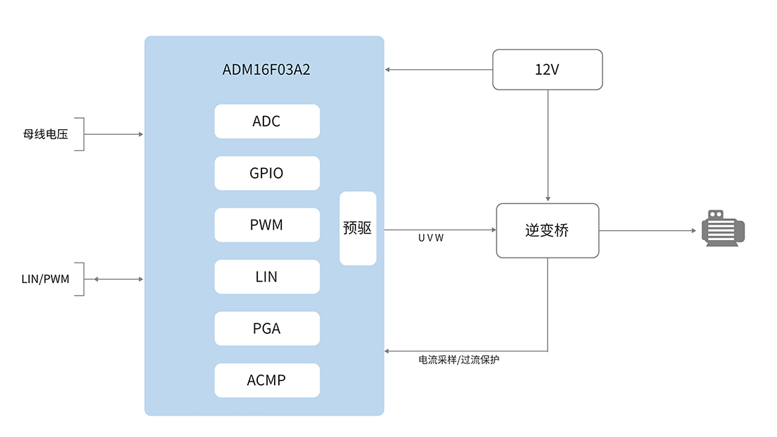 該方案采用單電阻FOC算法,電路簡單,成本低;通過自研無感FOC算法,功率閉環(huán)、速度閉環(huán),具備電機(jī)控制平穩(wěn),運(yùn)行噪音小、強(qiáng)帶載啟動能力等優(yōu)勢